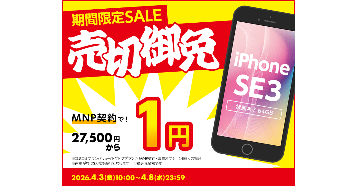 3月から開催されているIIJmioの『史上最強3つのお得なキャンペーン』。初期費用1円&1年間データ量3GBプレゼントかつ音声SIM契約なら1年間月額300円割引といった大盤振る舞いのキャンペーン内容です。