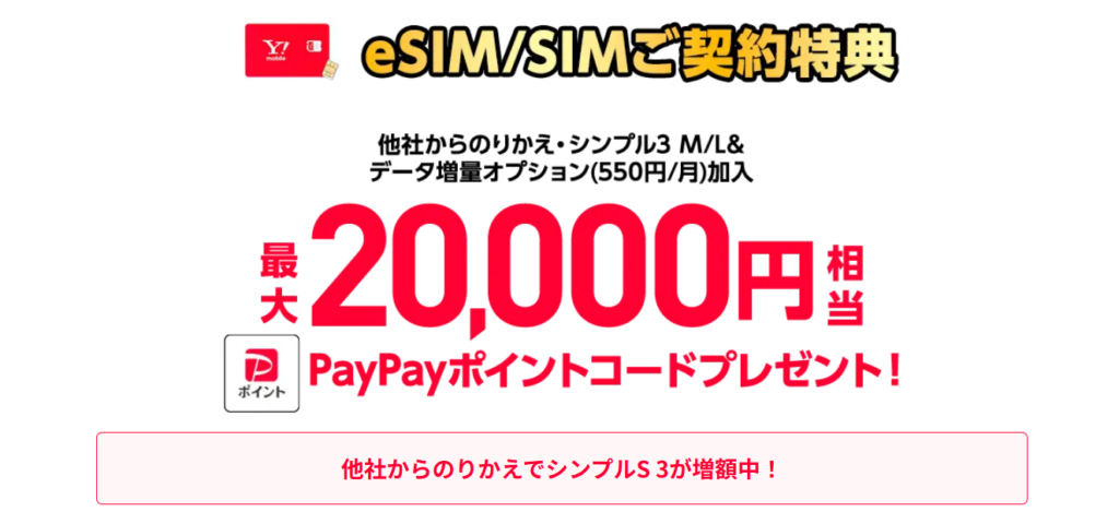 2026年2月20日(金)からワイモバイルオンラインストアにて、『決算セール』がスタートしているので、ご紹介です。 MNPでのSIMのみシンプル3 S契約特典が15,000円分増額され、20,000円分のPayPayポイント還元特典となっています。 また、5~18歳限定で新規契... -