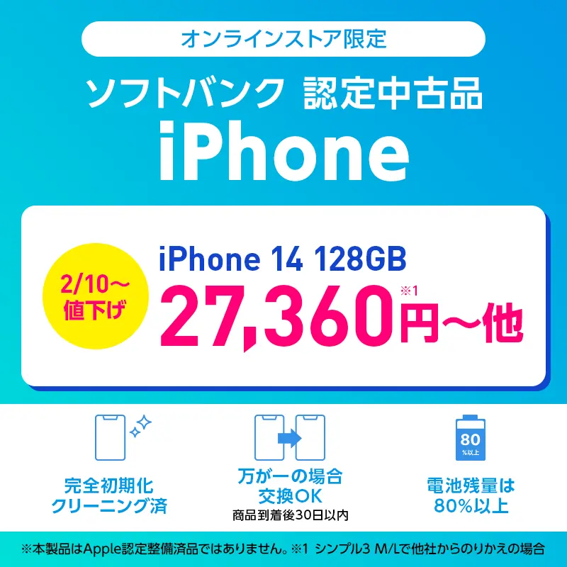 2026年1月23日(金)からワイモバイルオンラインストアにて、ソフトバンク認定中古品のiPhone SE(第3世代)が安くなっているので、ご紹介です。 ワイモバイルオンラインストアでの、ソフトバンク認定中古品のiPhone SE(第3世代)のプラン別価格は以下。 ... -