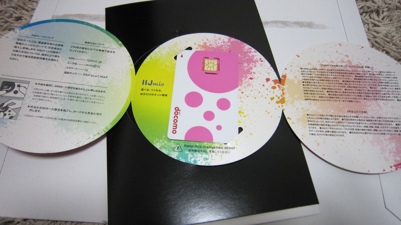 契約しているのはBICSIMなんですが、純粋なIIJmioのパッケージで交換SIMは送られてきました。円盤状のパッケージがオサレ。中身はこんな感じです。