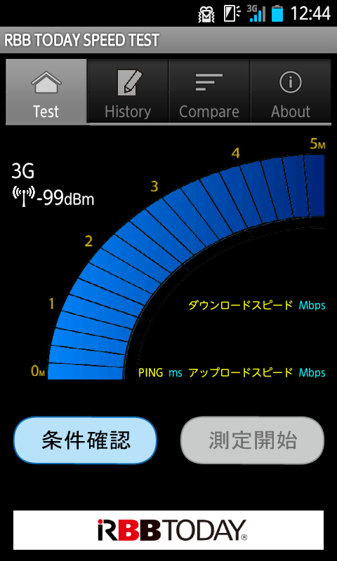 下り:0.61Mbps 上り:0.26Mbps PING:444ms