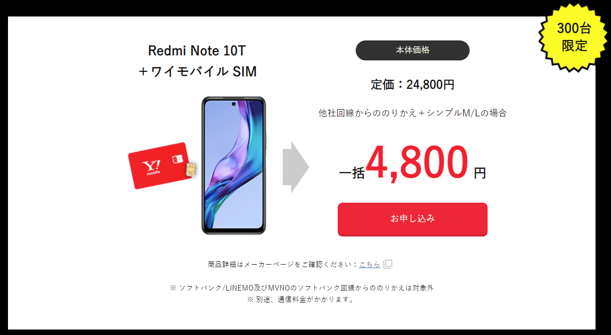 IIJmioのMNPキャンペーン価格と同価格なので、条件的にもよいです。ワイモバイルオンラインストアでの契約であれば、事務手数料も0円。