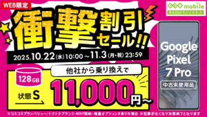 また、スマホ端末の決算セールも開催中です。