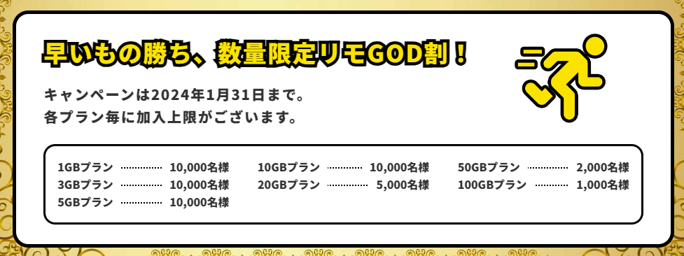 『リモGOD割』と銘打たれた、今回のREMOモバイルのキャンペーン。
