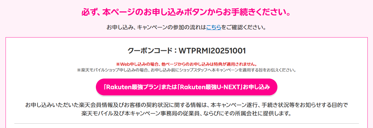 キャンペーン専用ページからの申し込みが必須なのは同じですが、キャンペーンのクーポンコード『WTPRMI20251001』が適用されていることが条件に加わりました。