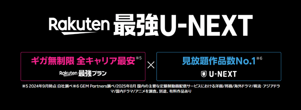 Rakuten最強U-NEXTとは、Rakuten最強プランと動画配信サービスのU-NEXTがセットになったお得なプラン