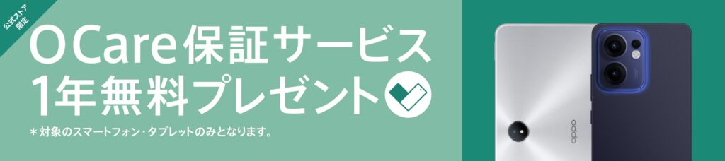 『OPPO Reno14 5G』『OPPO Reno13 A』『OPPO Pad 3 Matte Display Edition』は、0Care保証サービスが1年間無料で付いてきます。