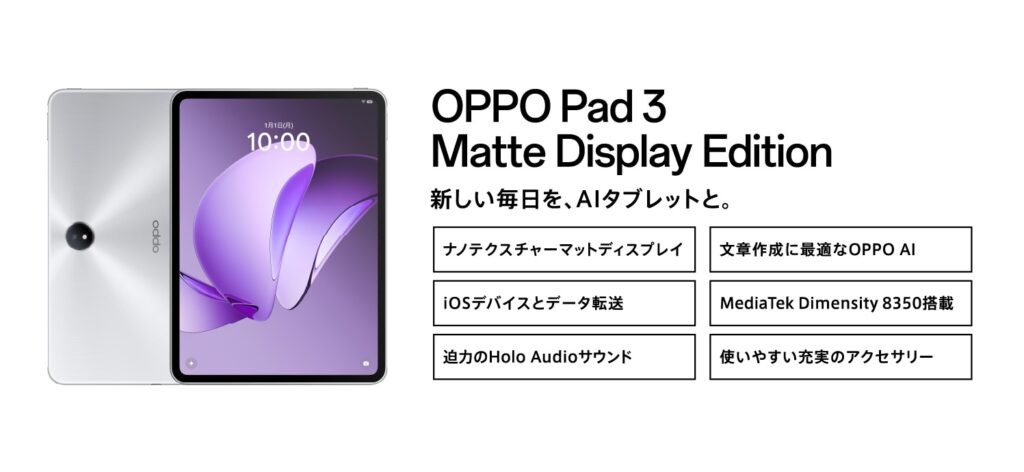 2025年6月に発売された『OPPO Pad 3 Matte Display Edition』は実質12%OFF&ポイント10倍で実質63,202円(税込)