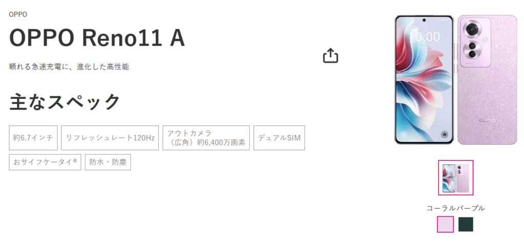 OPPO Reno11 Aは状態Sの未使用品なので、こまかい状態を気にせずに購入できる点が魅力です。