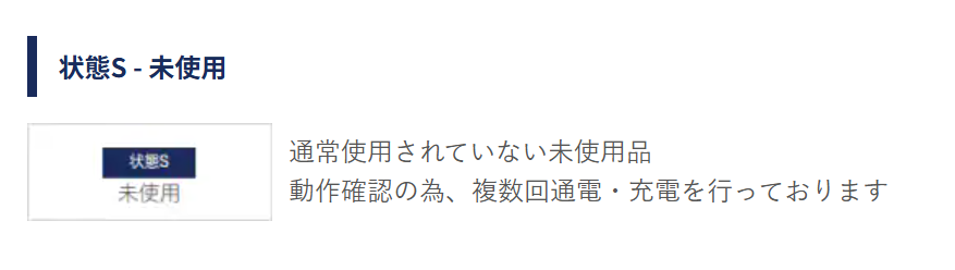ゲオモバイルの状態Sは、通常使用されていない未使用品。