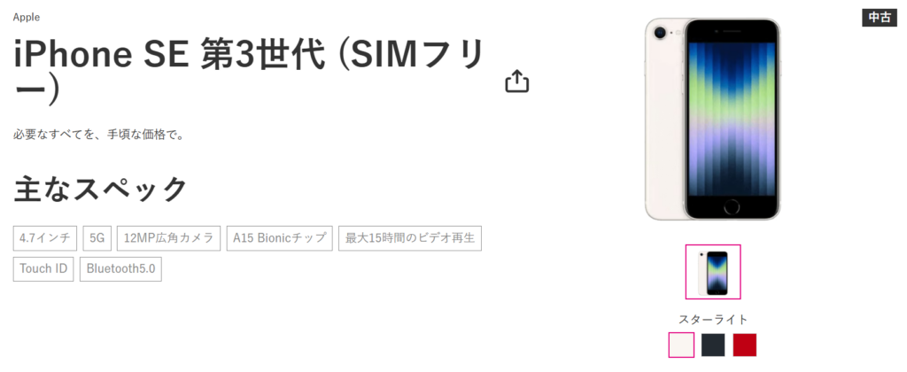 2026年3月6日(金)10時からスタートした今回のセールですが、9日15時時点では『iPhone SE(第3世代)』『Galaxy S23 Ultra』『Galaxy Z Flip 5』すべて在庫ありの状況です。