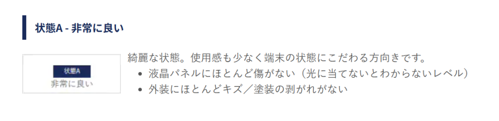 ゲオモバイルの状態Aは、綺麗な状態で使用感も少なく端末の状態にこだわる方向き。