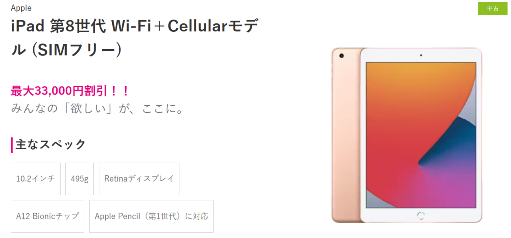 こちらの端末セールiPhoneの状態Bが対象となっています。